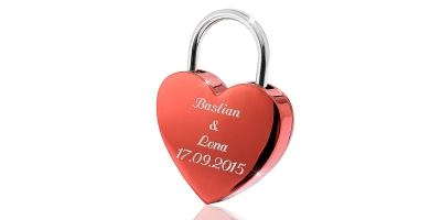 Lucchetto d'amore rosso a forma di cuore e personalizzabile con un'incisione a scelta! Un regalo ideale per le coppie chevogliono immortalare il loro amore...