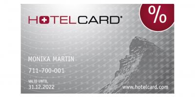 Buono regalo per una Hotelcard personale valida per 1 anno. Con la Hotelcard potete soggiornare in più di 500 hotel in Svizzera e nelle regioni vicine con uno sconto del 30-50%. Siete voi a decidere quando, dove e quanto spesso, perché potete usare la Hotelcard quante volte volete entro un anno. E la cosa migliore è che il vostro partner può accompagnarvi in qualsiasi momento, perché basta una singola tessera per prenotare una camera doppia. Per riscattare il buono e ricevere la Hotelcard, riscuotete il codice del buono su stage.geschenkparadies.ch/gutschein.